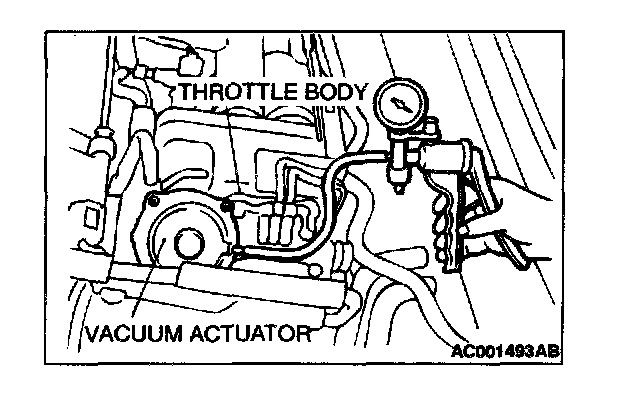 2. Check that the throttle lever operates when applying vacuum, and the vacuum is maintained.