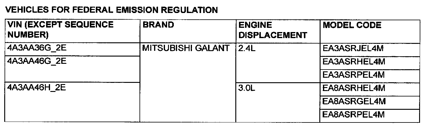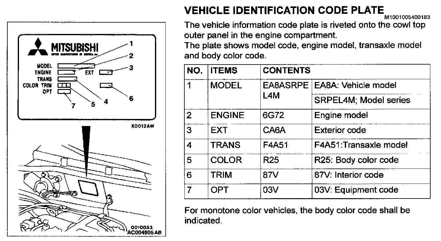 In order to protect against theft, a Vehicle Identification Number (VIN) is attached as a plate or label to the following major parts of the engine and transaxle, as well as main outer panels: