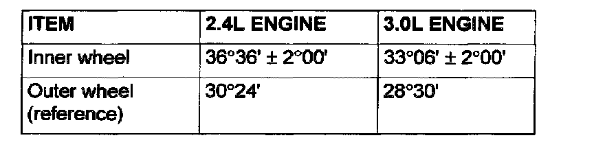 Camber 0° 00' ± 30' (Left/right deviation within 30')