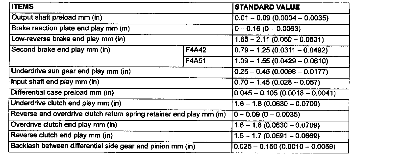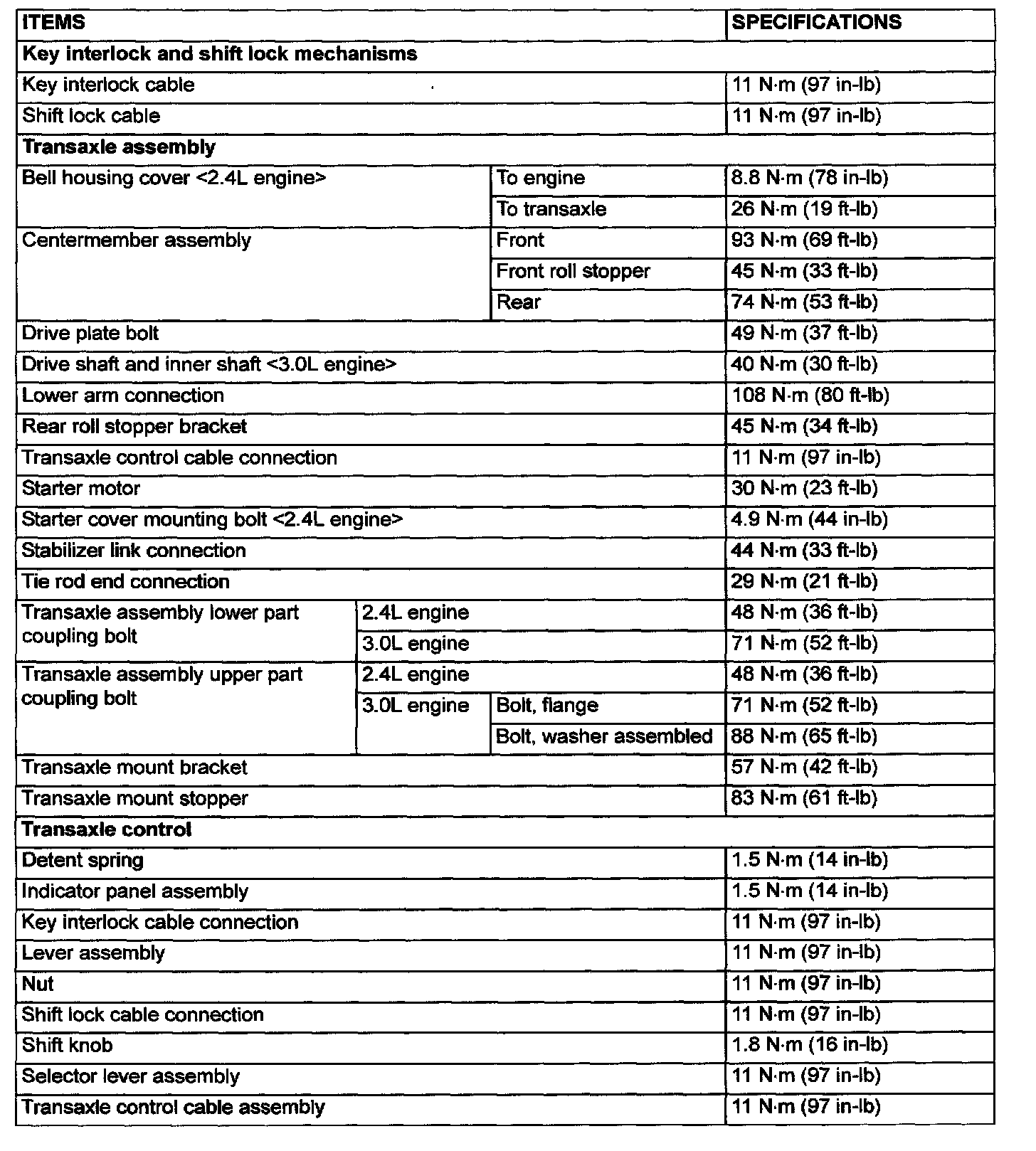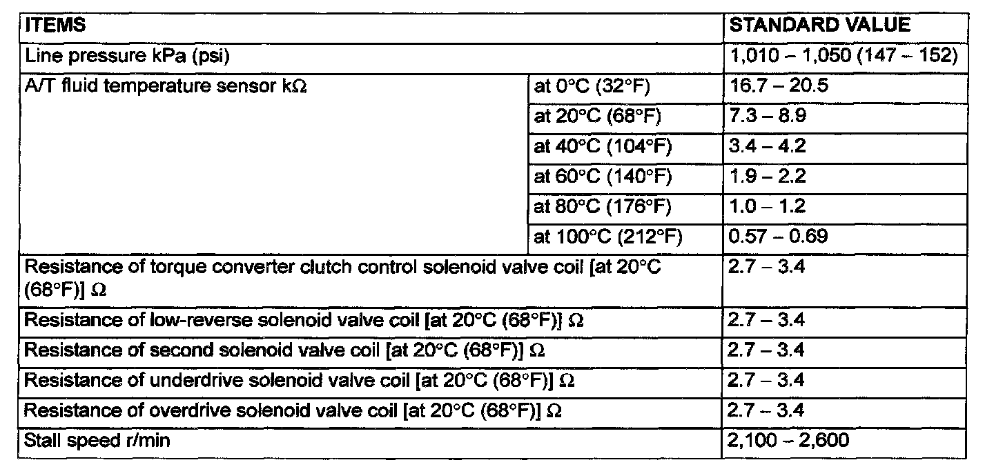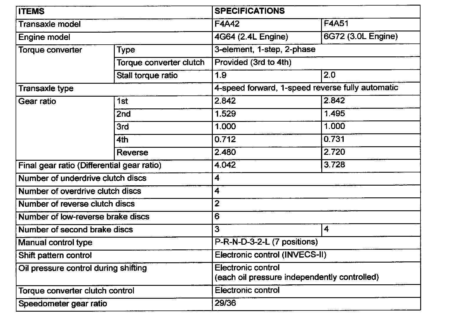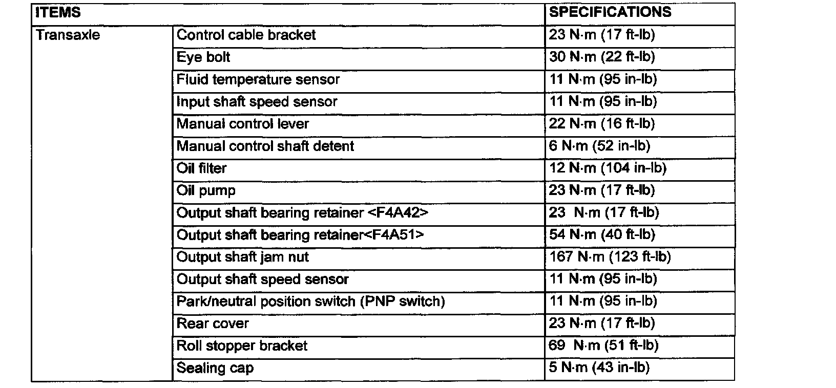 AUTOMATIC TRANSAXLEGENERAL SPECIFICATIONS
