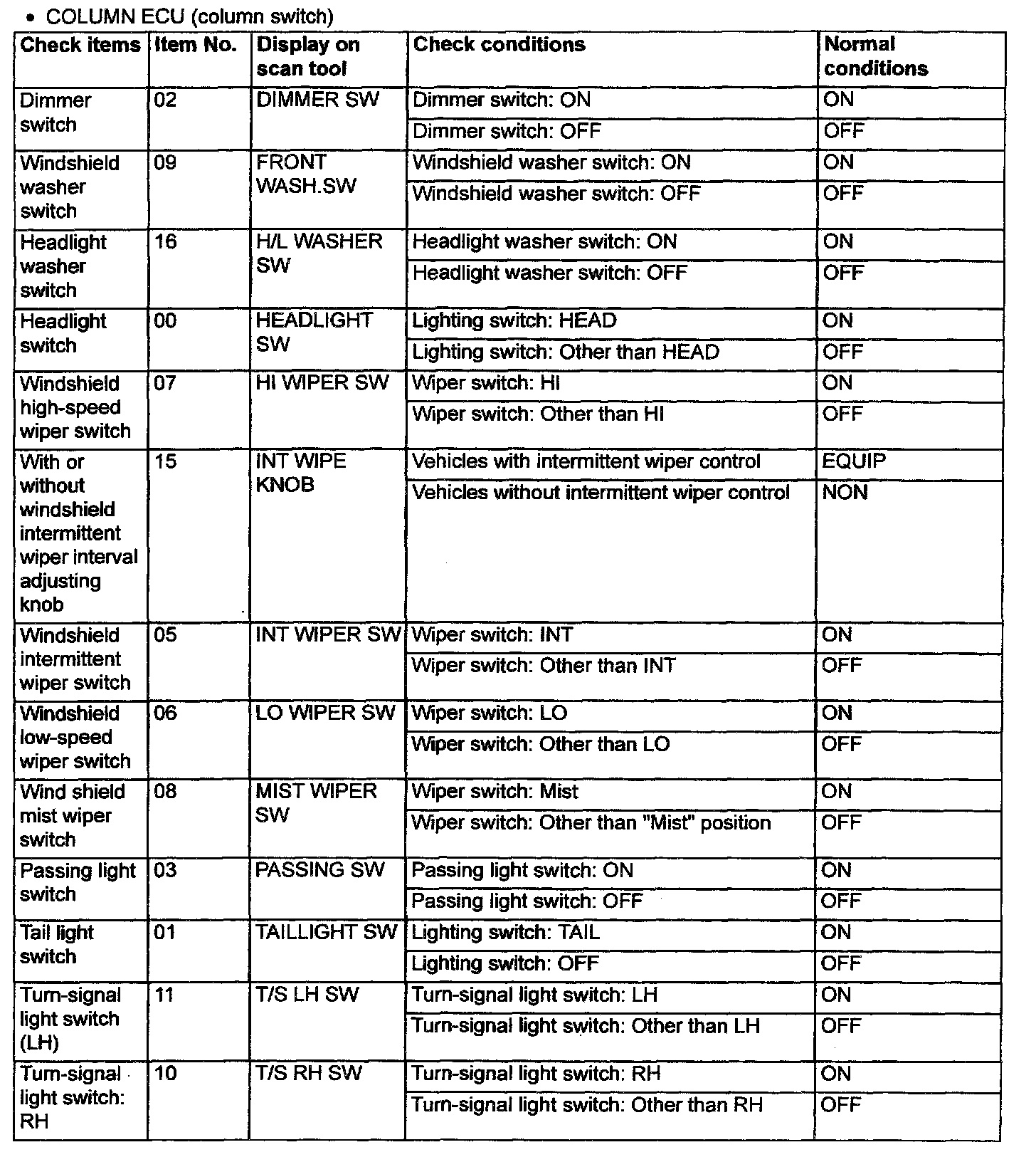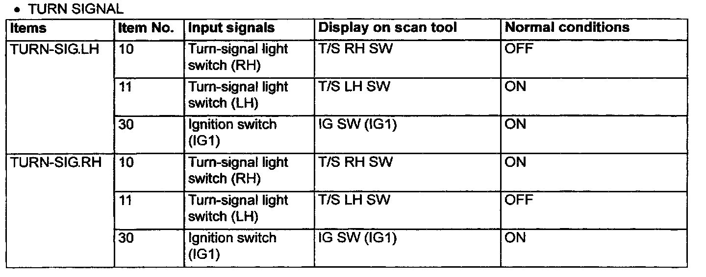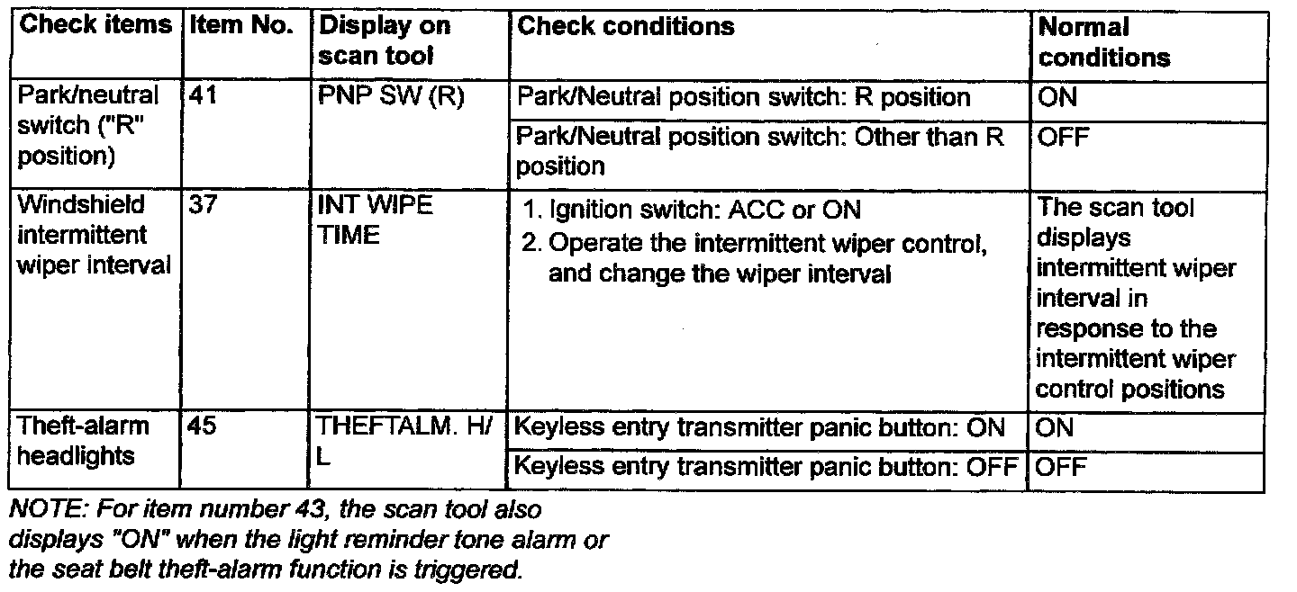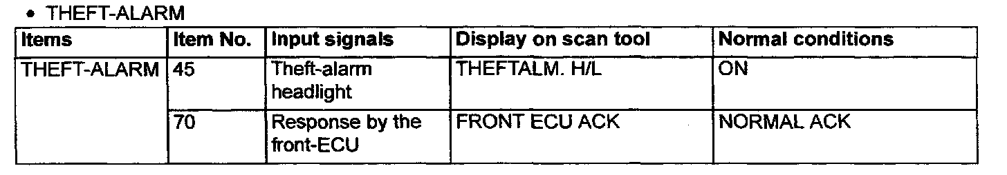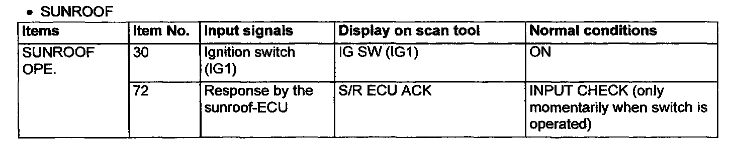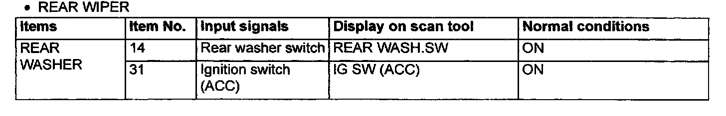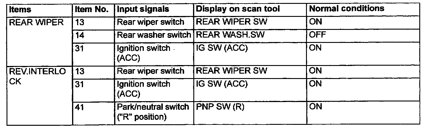 2. The following input signals can be checked by using the scan tool and the SWS monitor kit.