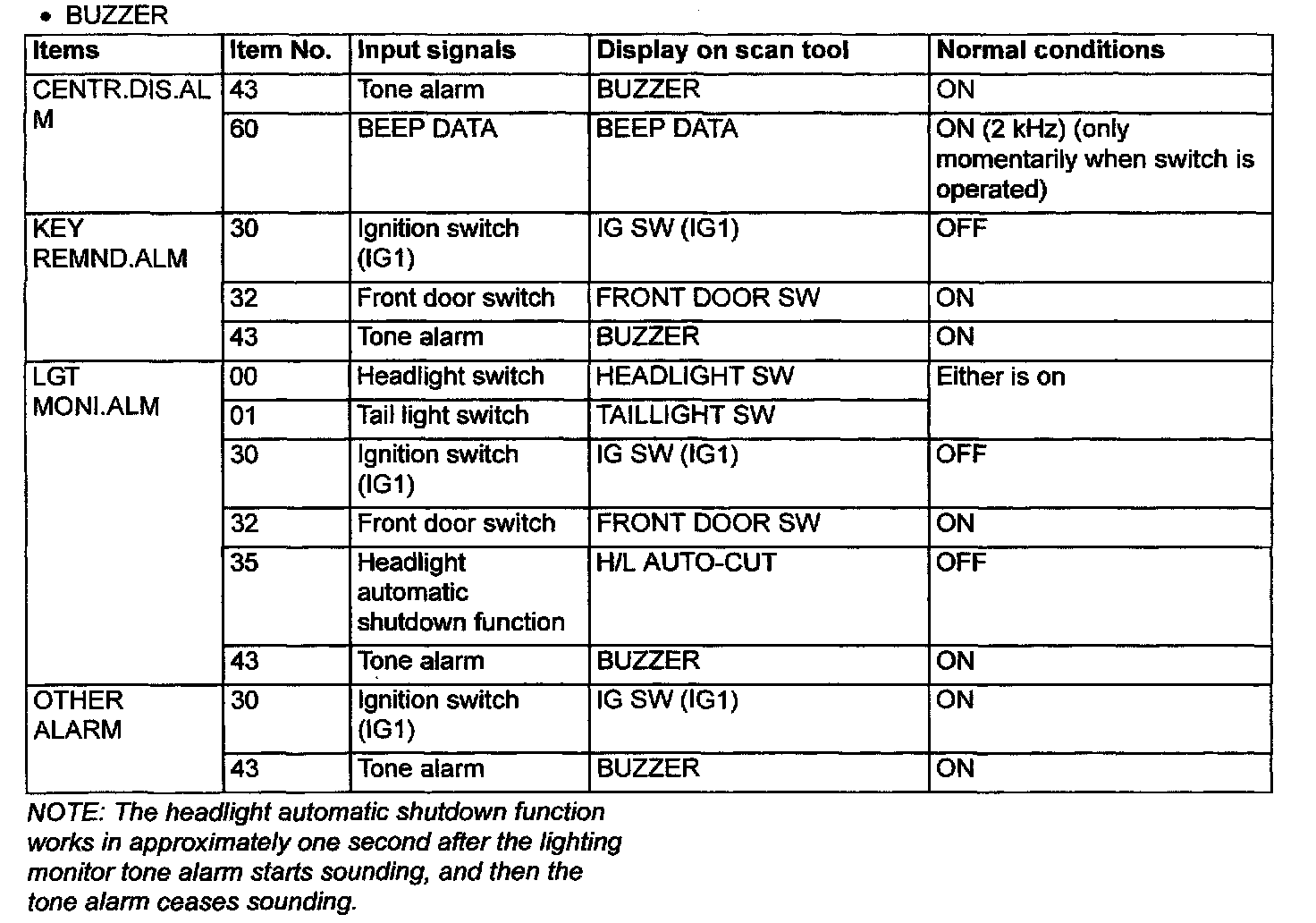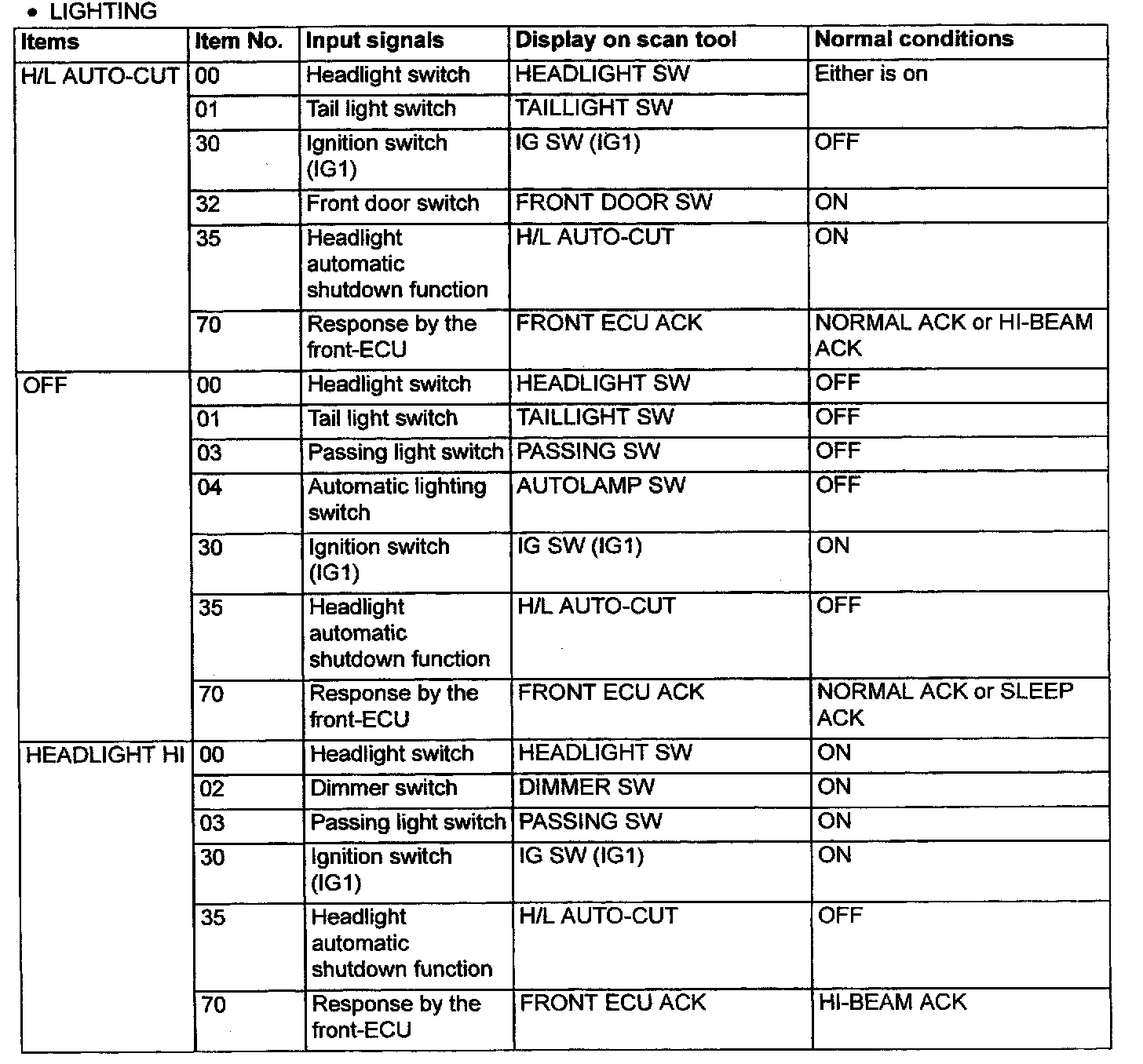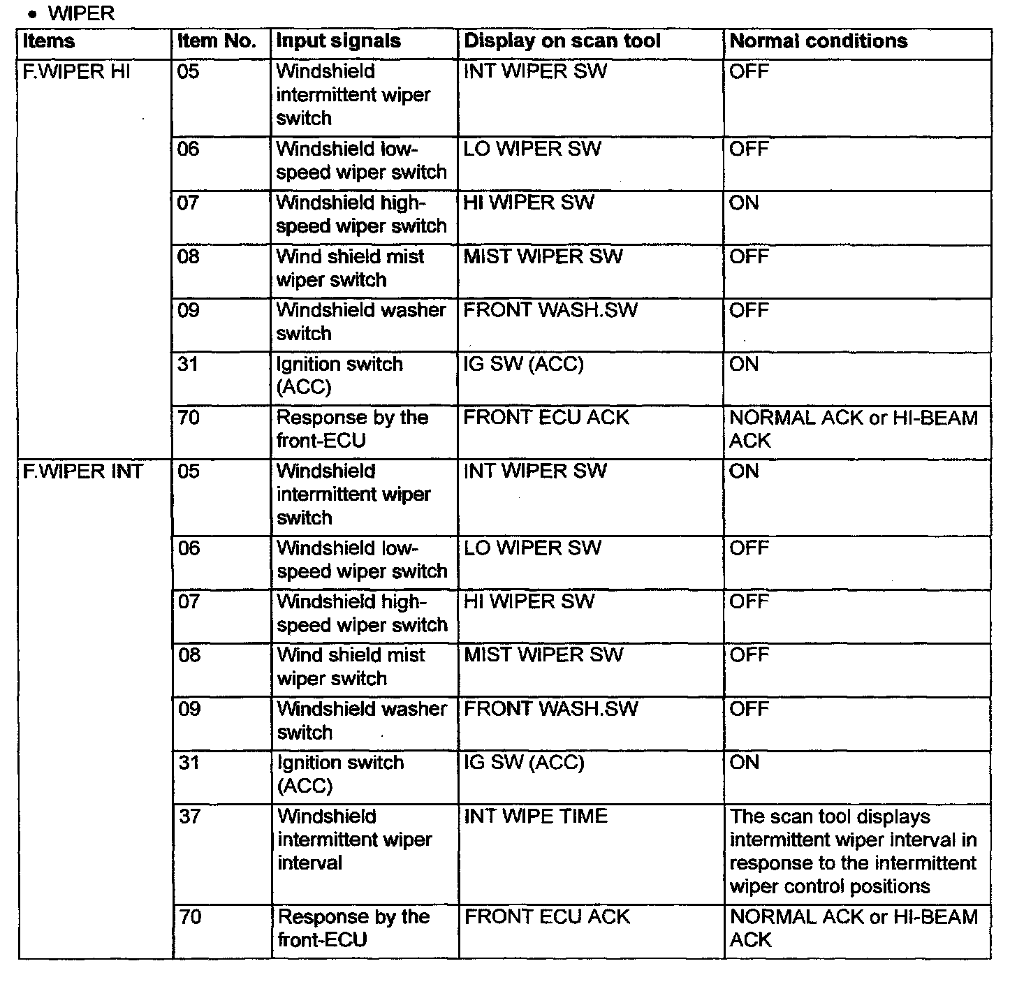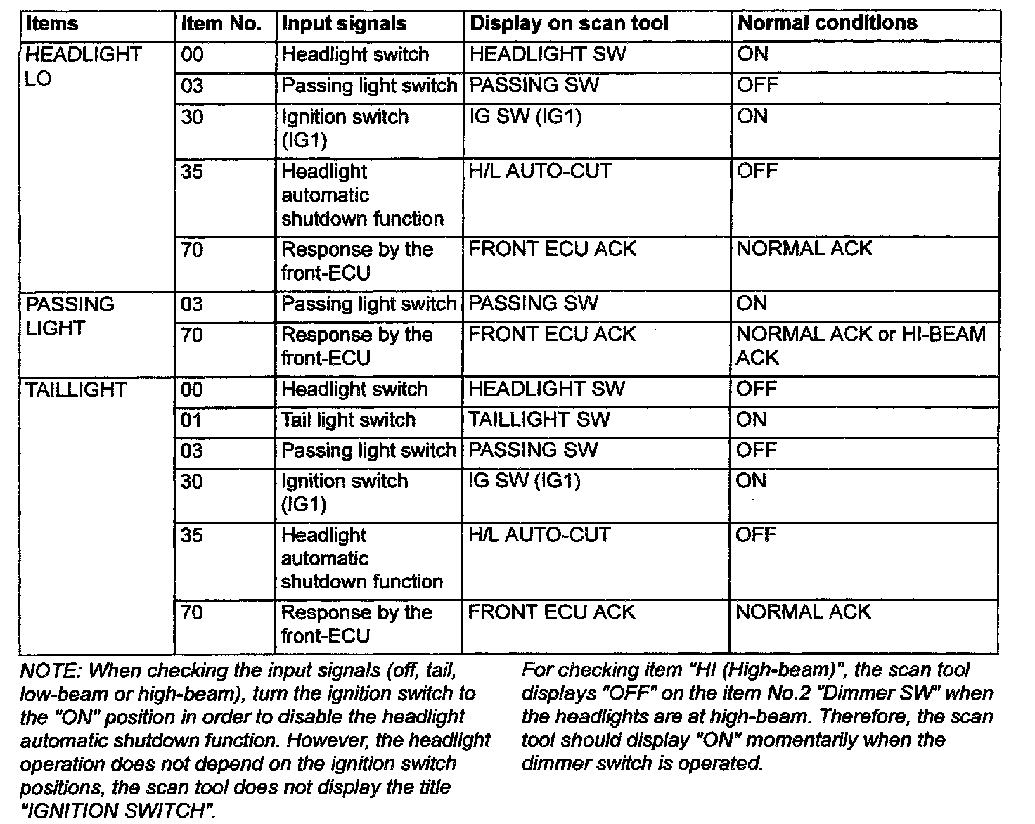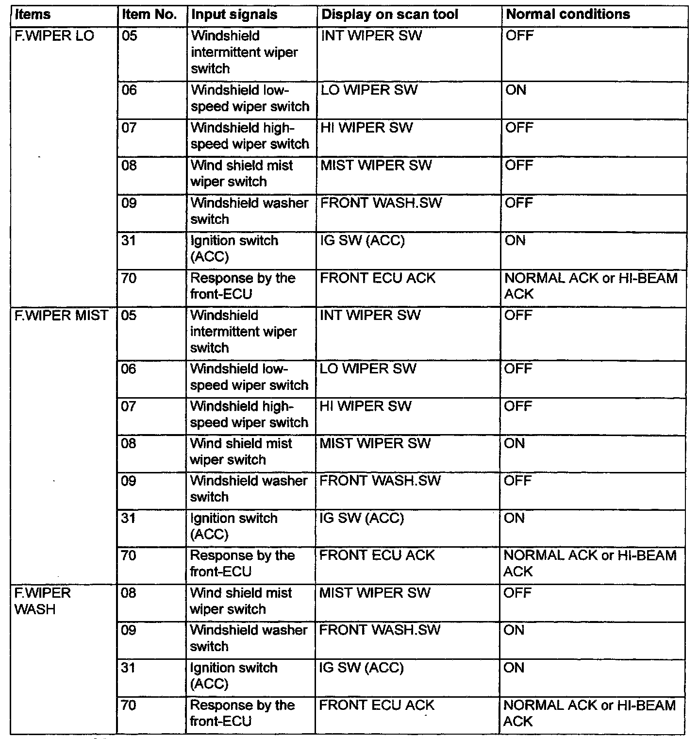 2. The following input signals can be checked by using the scan tool and the SWS monitor kit.