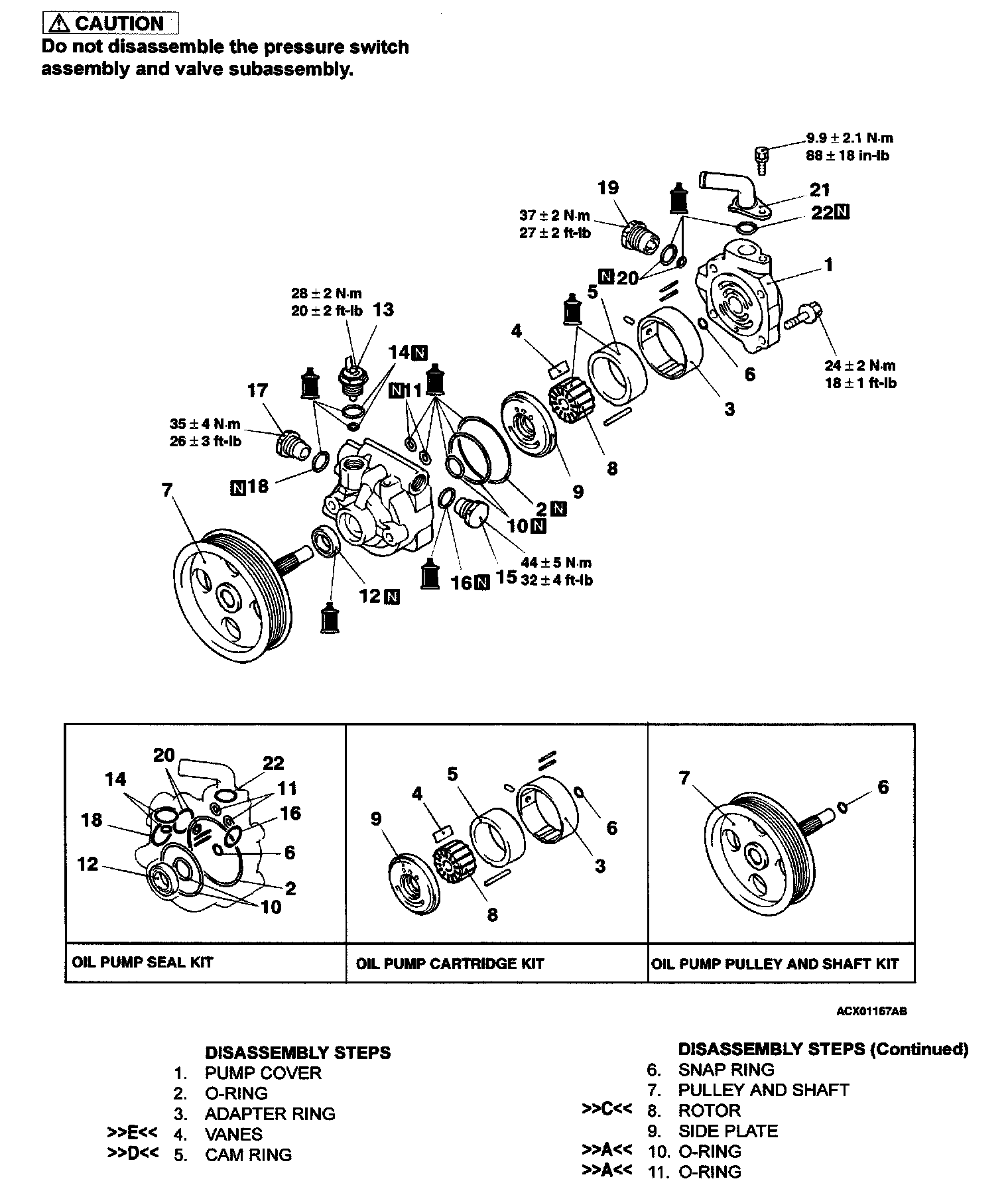 POWER STEERING OIL PUMP ASSEMBLY REPLACEMENT AND OVERHAUL W/ RELATED COMPONENTS