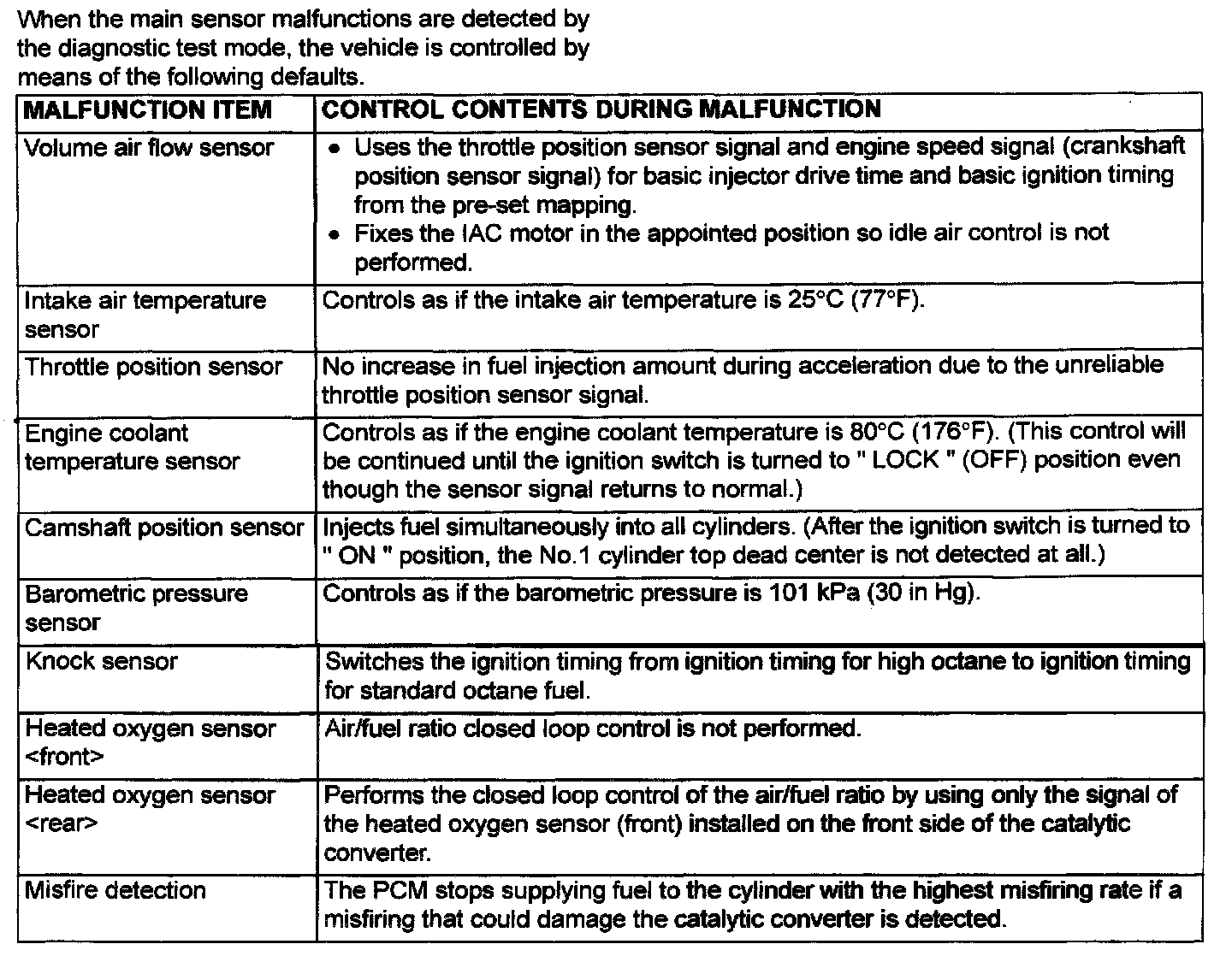 Fail-Safe Function Reference Table:
