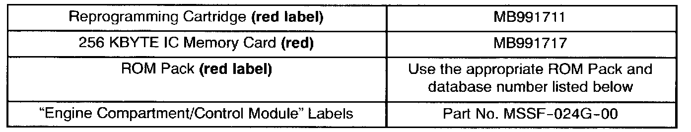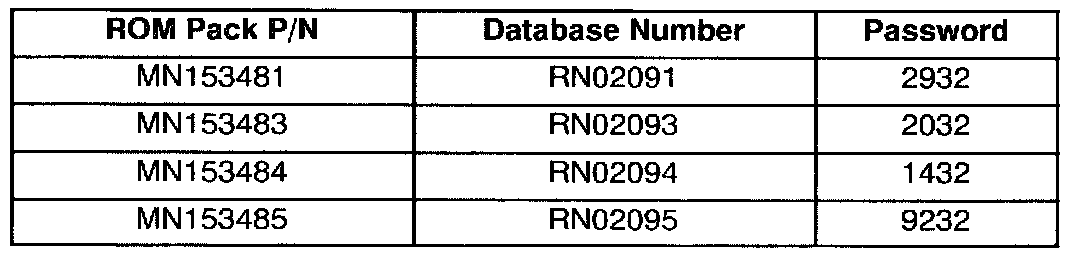 To verify that the correct reprogramming has been made, the ROM ID number will display on the MUT-II screen. Note this number. The table in Attachment A lists the ECU part numbers and ROM ID numbers that should display after reprogramming.
