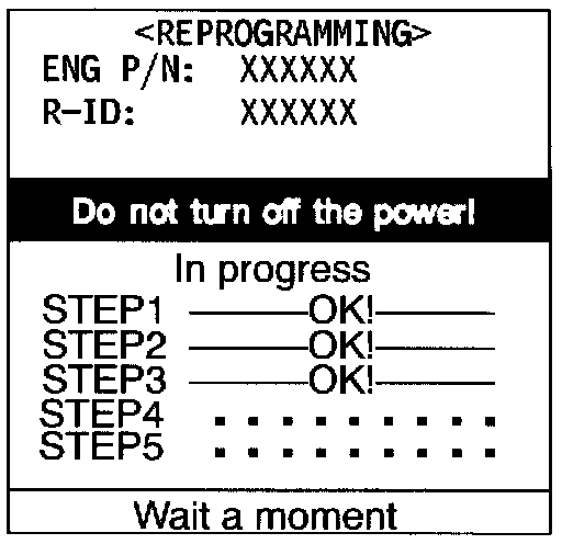 13. The MUT-II will display this screen as it reprograms the PCM. It will take approximately 15 minutes to complete.