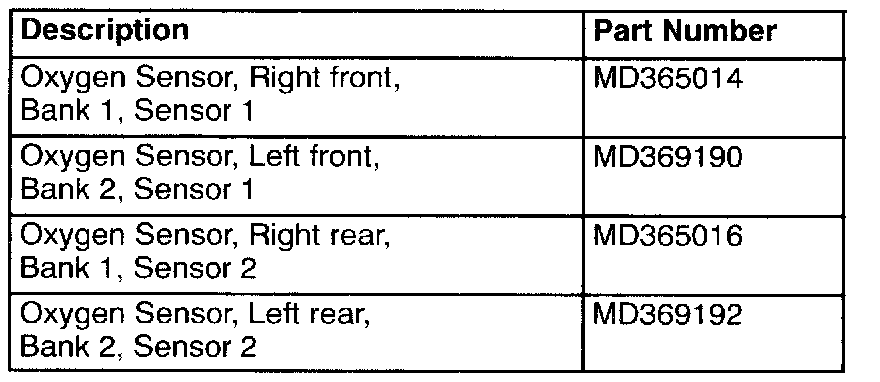 19. On 2001 models only, replace the four heated oxygen sensors listed in the PARTS INFORMATION section of this bulletin. Refer to Group 13 in the 2001 Montero service manual.