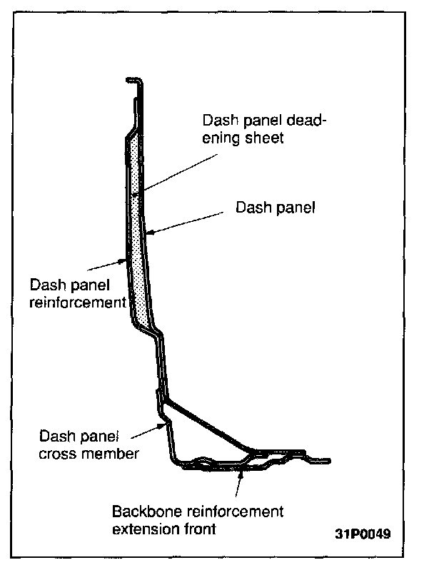 A deadening sheet (cellular rubber sheet) is provided between the dash panel and the dash panel reinforcement. This double wall construction improves the soundproofing effects.