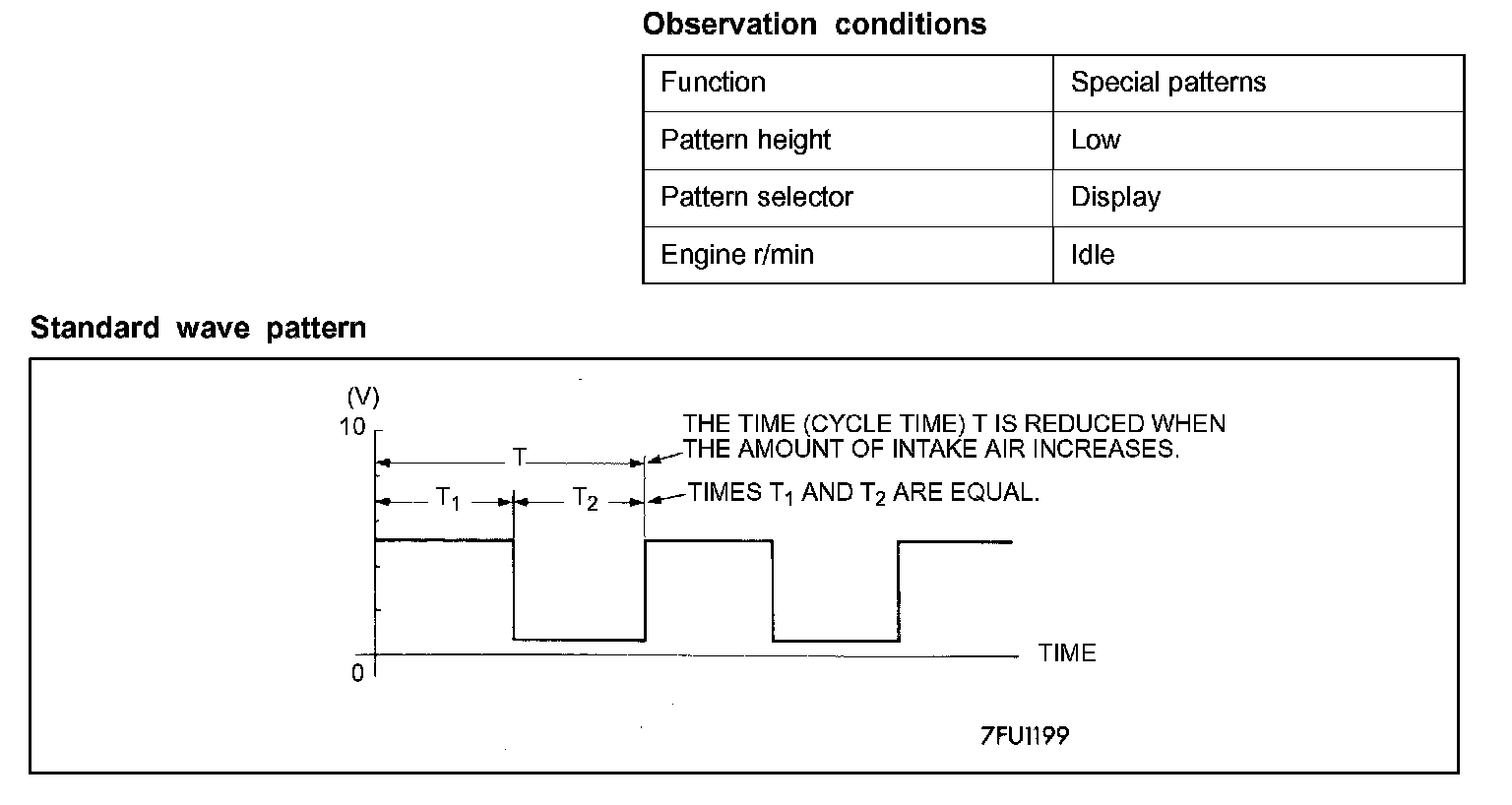 Check to be sure that cycle time T becomes shorter and the frequency increases when the engine speed is increased.