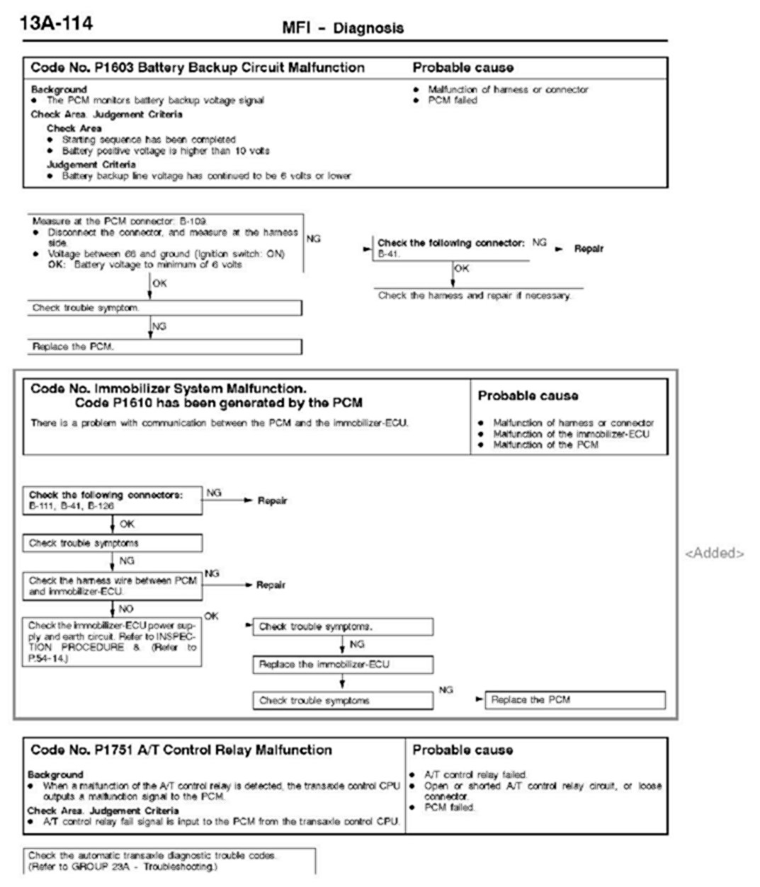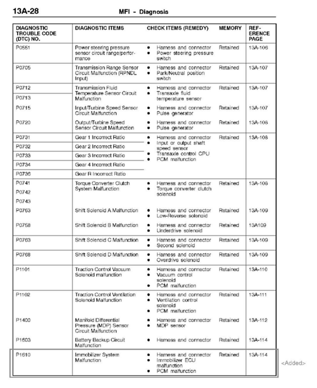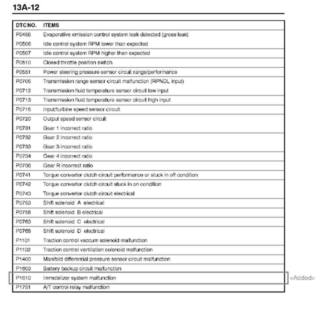 Diagnosis procedures for Diagnostic Trouble Code (DTC) P1610, " Immobilizer System Malfunction," are missing in affected service manuals. This bulletin contains this information.