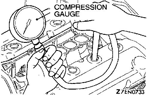 7. Crank the engine with the throttle valve fully open and measure the compression pressure.