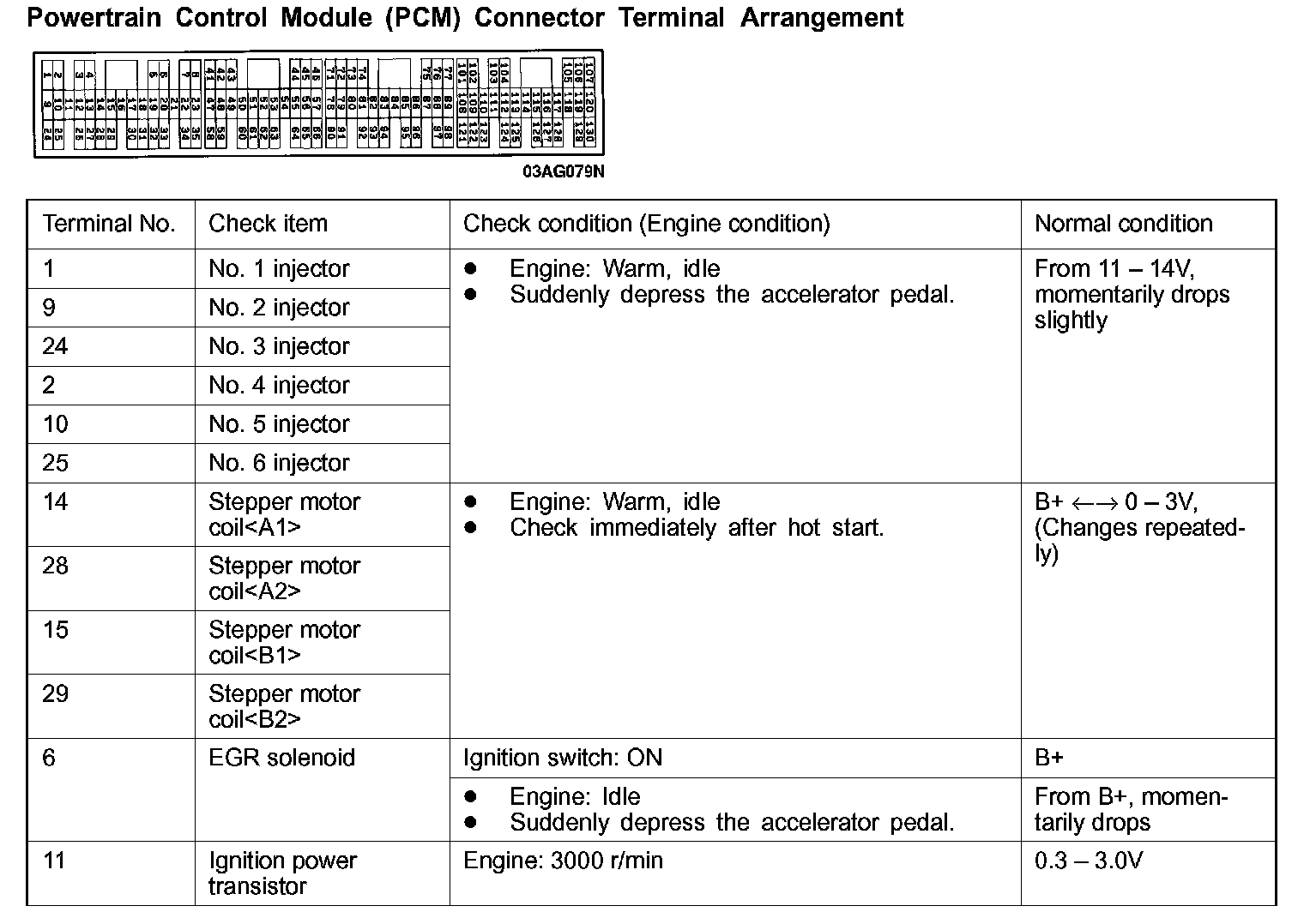 Power Control Module (PCM) Connector Terminal Arrangement Part 3: