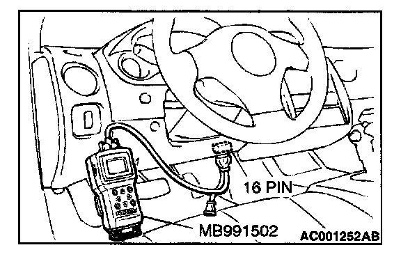 CAUTION: To prevent damage to scan tool MB991502, always turn the ignition switch to the "LOCK" (OFF) position before connecting or disconnecting scan tool MB991502.