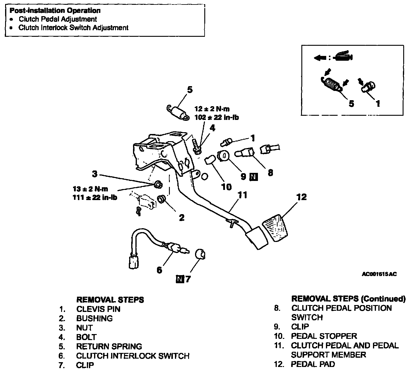 CLUTCH PEDAL REPLACEMENT W/ RELATED COMPONENTS