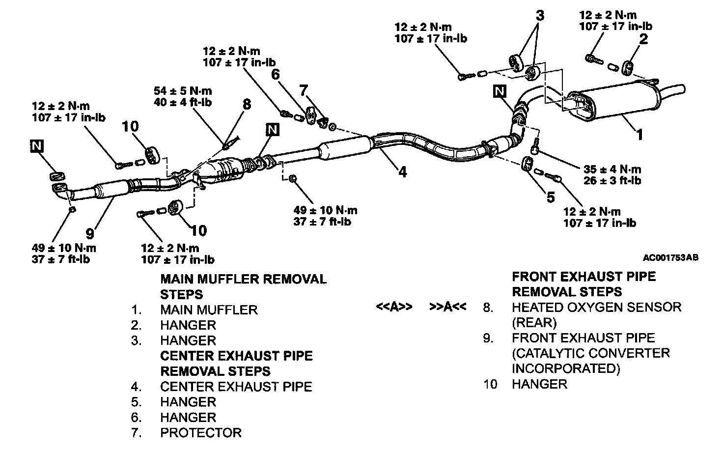 REMOVAL AND INSTALLATIONExhaust Pipe, Main Muffler And Catalytic Converter: