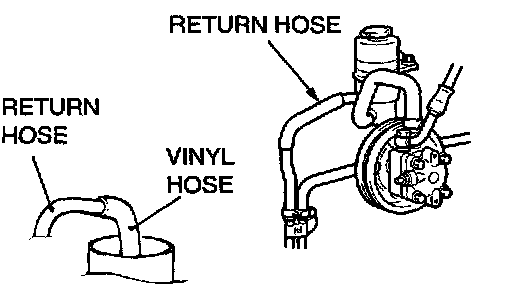3. Connect a vinyl hose to the return hose, and drain the fluid into a container.