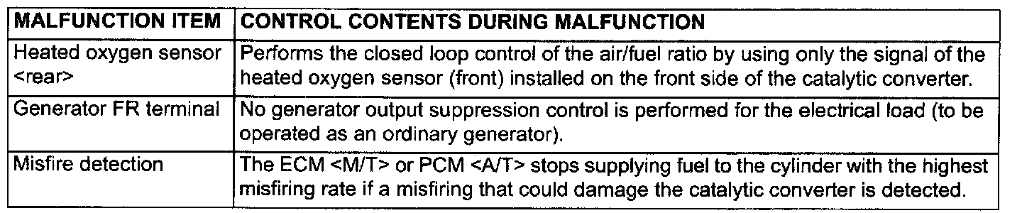 When the main sensor malfunctions are detected by the diagnostic test mode, the vehicle is controlled by means of the defaults.