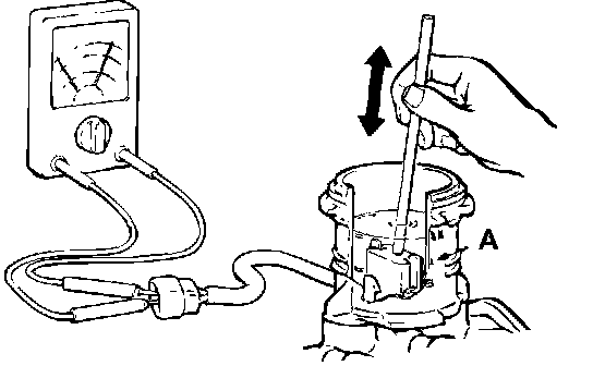BRAKE FLUID LEVEL SENSOR CHECKThe brake fluid level sensor is in good condition if there is no continuity when the float surface is above "A" and if there is continuity when the float surface is below "A."