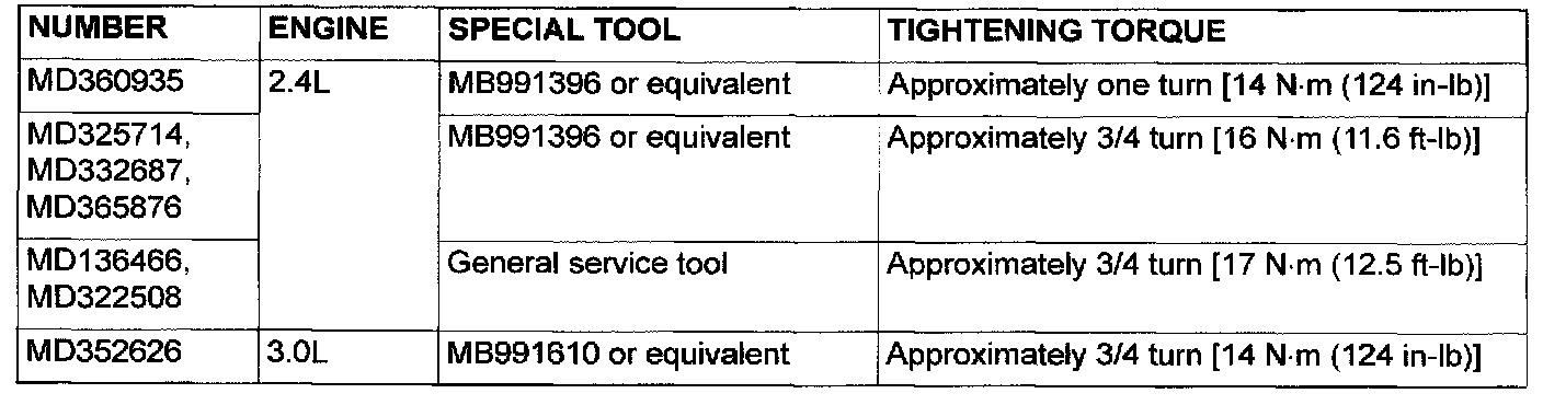 <2.4L Engine> MD136466, MD322508, MD325714, MD332687, MD360935, MD365876 or equivalent