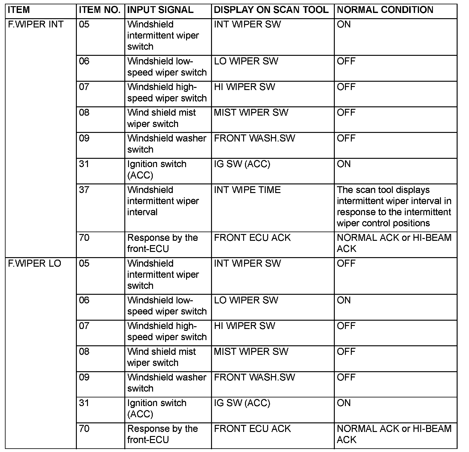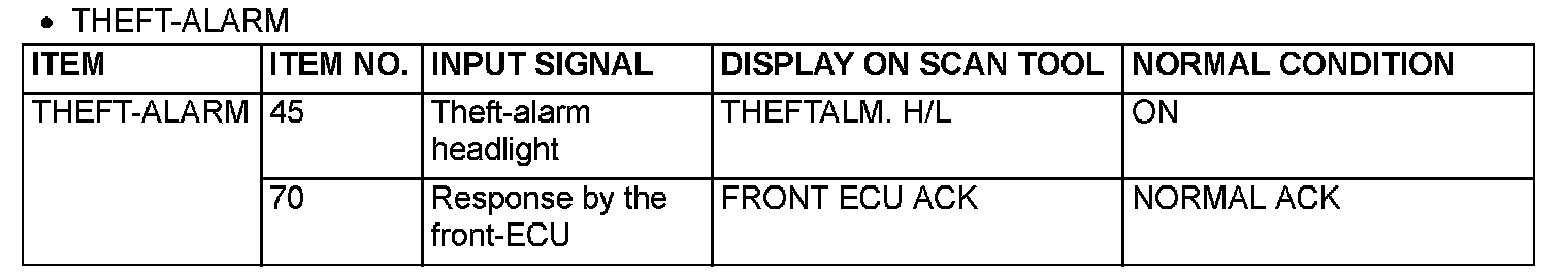 The table below shows the service data and their normal condition, which are displayed during the "FUNCTION DIAG." The row "Normal conditions" shows values, which are shown when each operation is made.