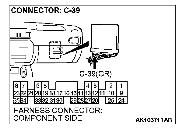 1. Disconnect the C-39 and measure at the harness side.