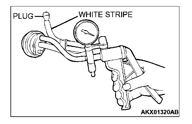 VACUUM CONTROL VALVE CHECK1. Disconnect the vacuum hose (white stripe) from the vacuum control valve and connect the hand vacuum pump to the vacuum control valve.