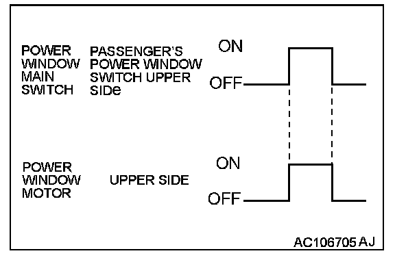 When the passenger's power window switch on the power window main switch is pulled up, the system energizes its respective power window motor, and then passenger's window glass rises.