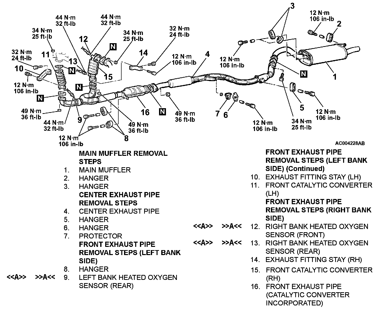 <>LEFT BANK HEATED OXYGEN SENSOR (REAR)/RIGHT BANK HEATED OXYGEN SENSOR (REAR)/RIGHT BANK HEATED OXYGEN SENSOR (FRONT) REMOVAL