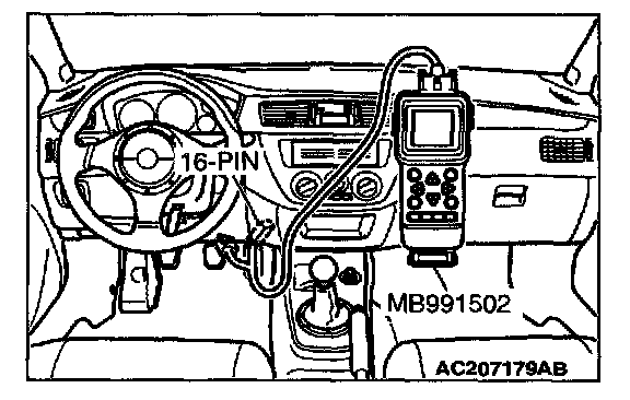 1. Connect scan tool MB991502 to data link connector (16-pin).