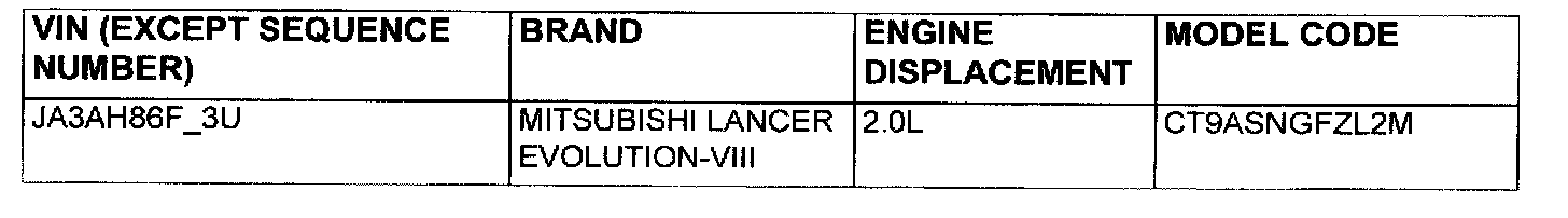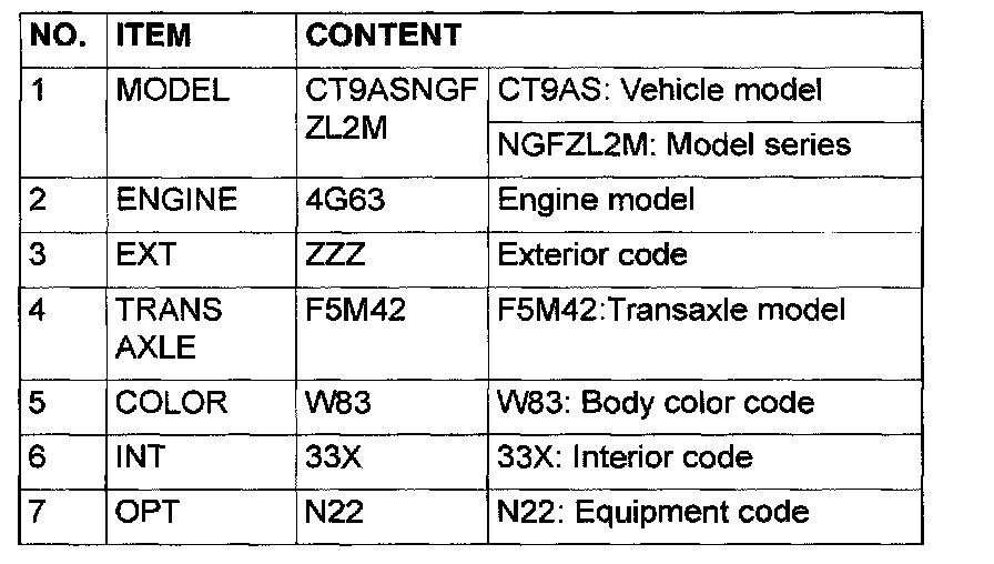 NOTE: *: Check digit means a singles number or letter X used to verify the accuracy of transcription of vehicle identification number