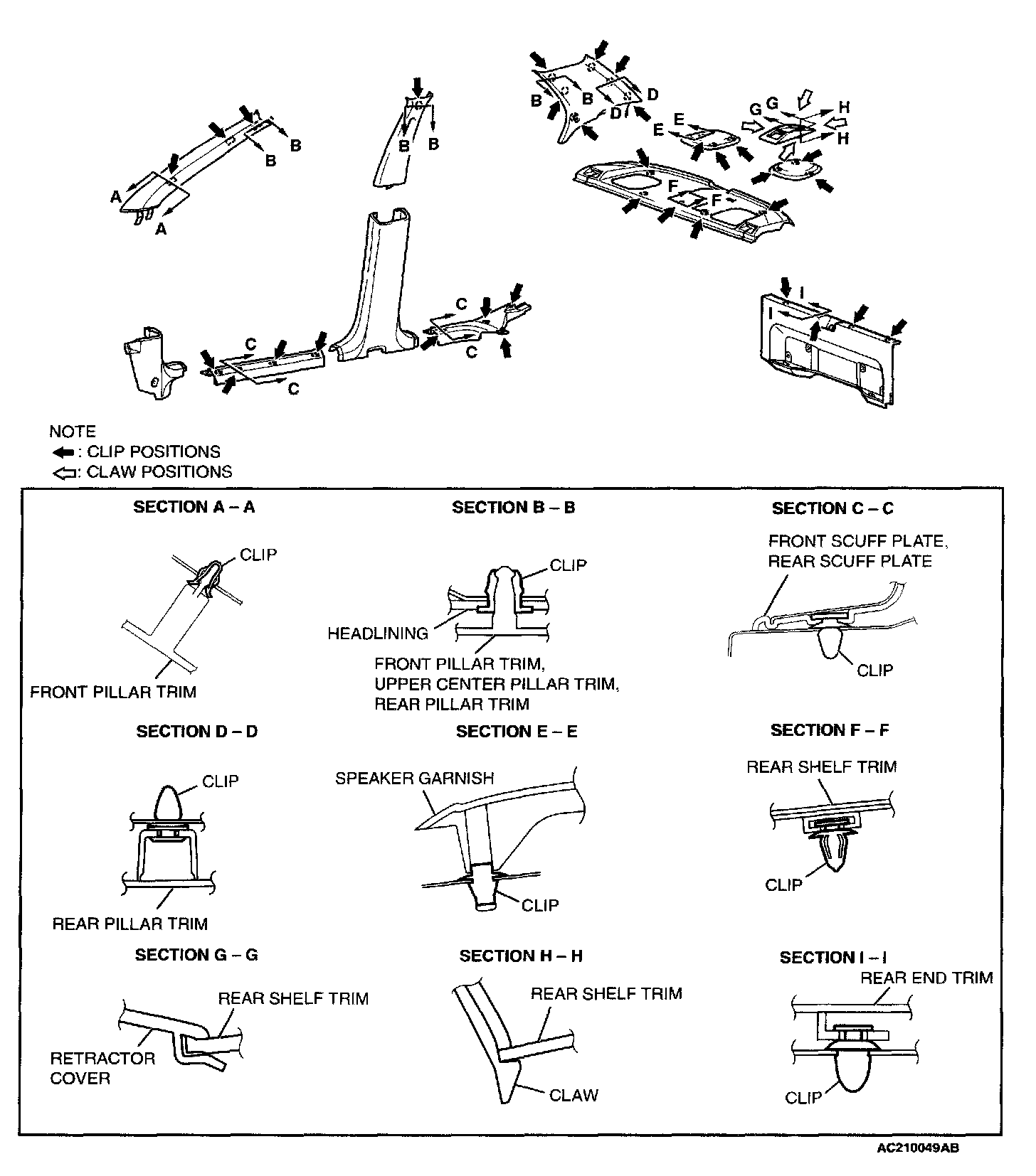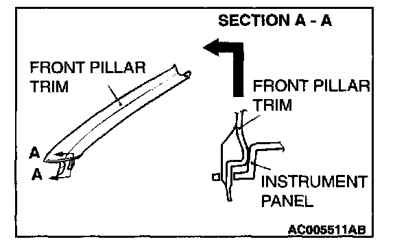 Release the clip by pulling in the direction shown in the illustration and remove the front pillar trim.