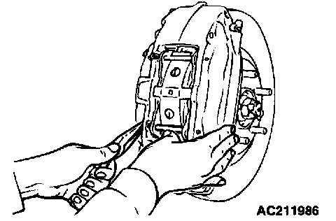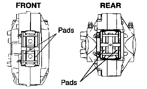 ^ Whenever a pad must be replaced, replace both LH and RH wheel pads as a set to prevent the vehicle from pulling to one side when braking.
