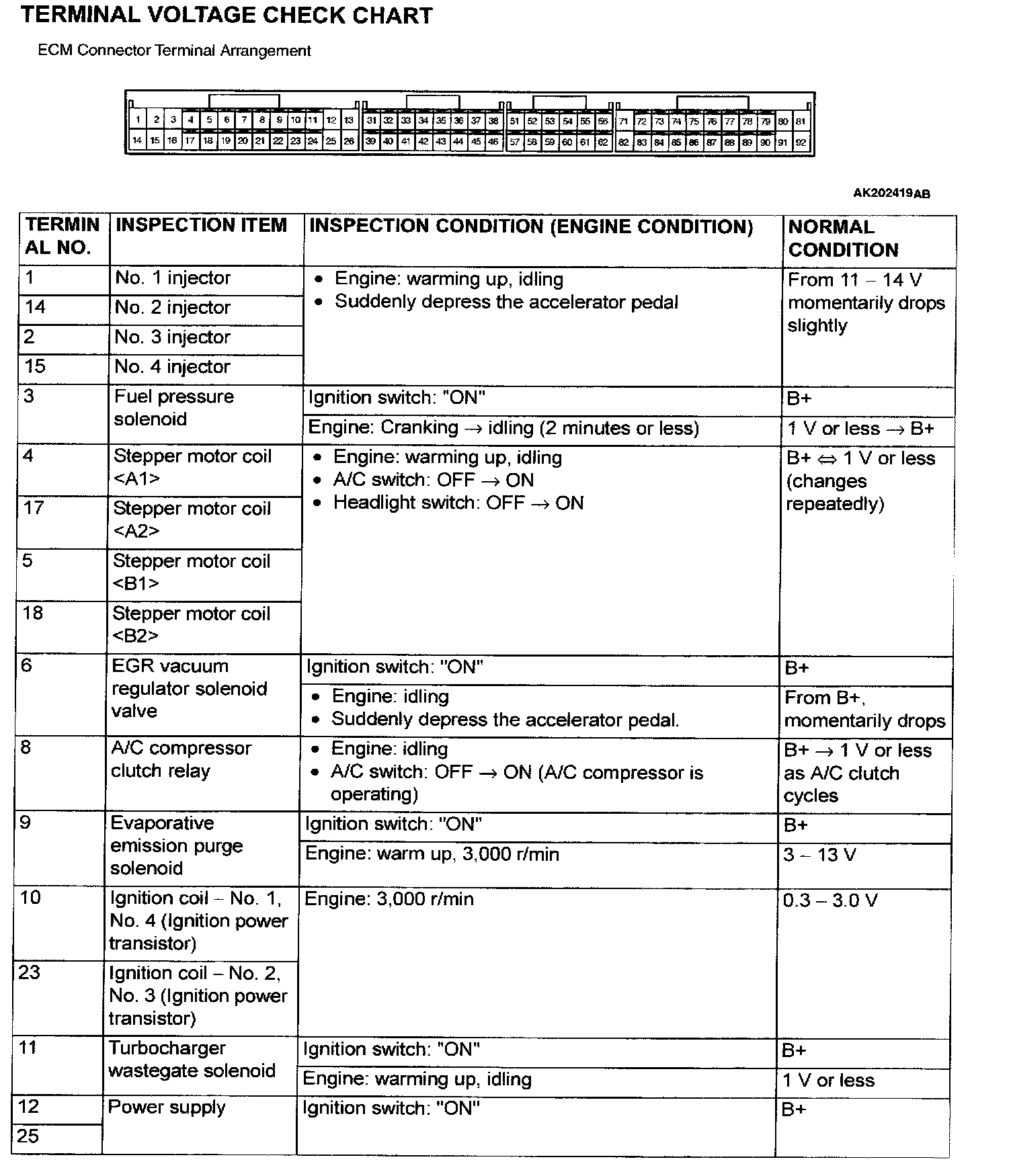 ECM Connector Terminal Arrangement Part 2: