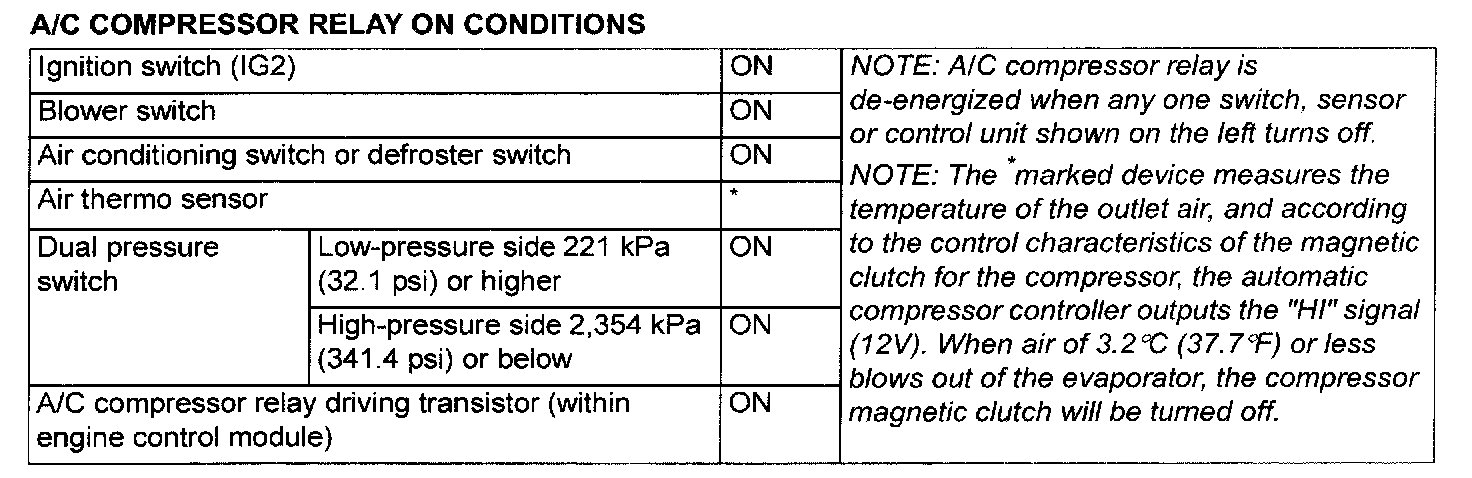 A/C Compressor Relay On Conditions: