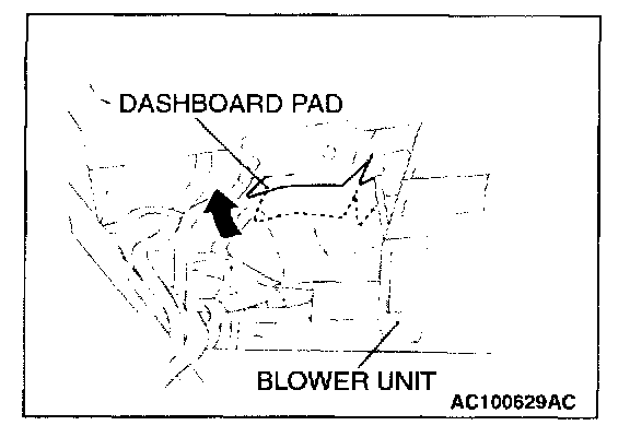 1. When removing the evaporator, cut and fold back the dashboard pad as in the diagram. (The thickness of the pad interferes with the removal of the evaporator.)