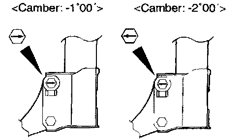 Select the camber by the installation direction of the arrow of the connecting bolt of the strut assembly and the knuckle.