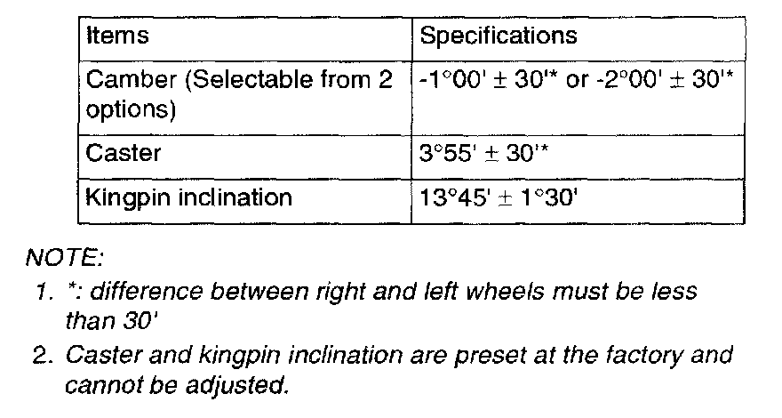 CAMBER, CASTER AND KINGPIN INCLINATION