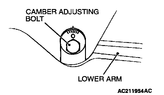 1. Carry out camber adjustment by turning the camber adjusting bolt (lower arm to rear crossmember mounting bolt).