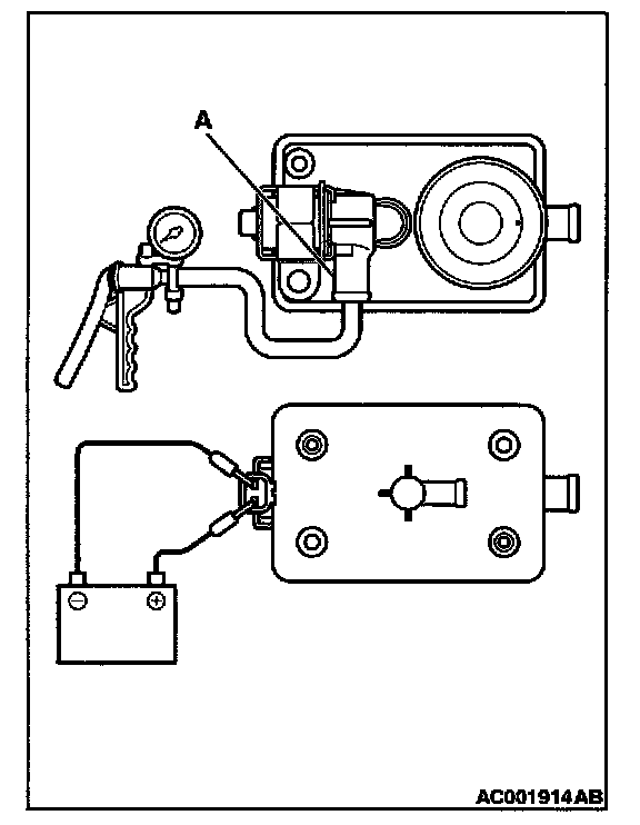2. Connect a hand vacuum pump to nipple (A) of the orvr vent valve module
