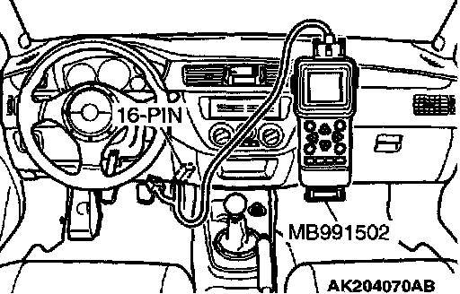 2. Connect scan tool MB991502 or MB991958 to the data link connector.