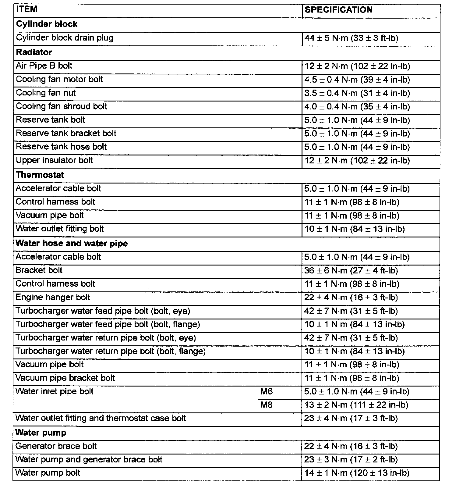 Fastener Tightening Specifications