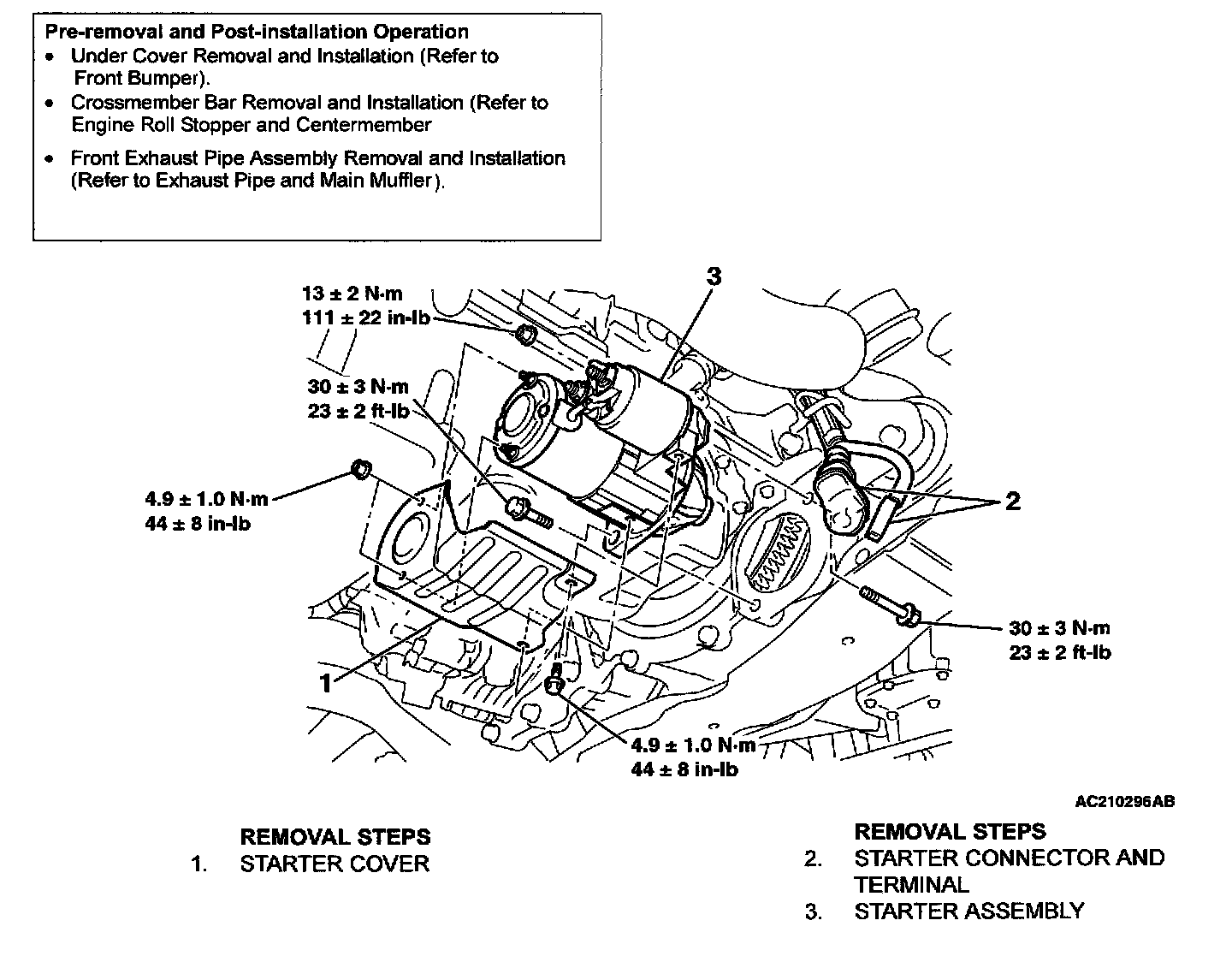 Starter cover bolt 4.9 ± 1.0 N.m (44 ± 8 in-lb)