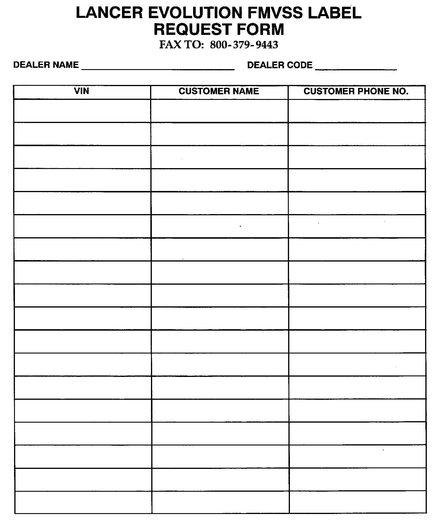 3. Fax the FMVSS Label Request Form - see your Mitsubishi Dealer.