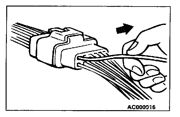 Terminals inside a connector may not engage properly even if the connectors engage. Make sure that each terminal does not come out of the connector when gently pulling each harness wire. If it does, repair or replace the terminal and/or connector.