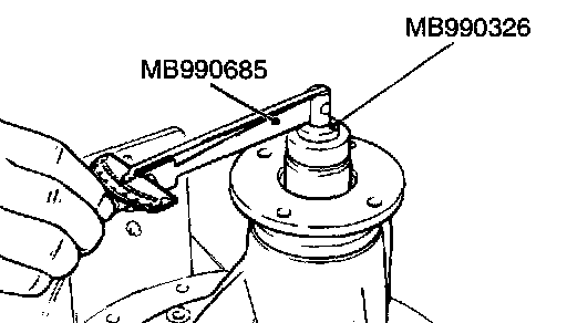 7. Use special tools MB990685 and MB990326 to measure the drive pinion turning torque (with drive pinion oil seal) to verify that the drive pinion turning torque complies with the standard value.