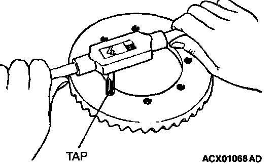 2. Remove the adhesive adhered to the threaded holes of the drive gear by turning the tap (M10 x 1.25). Clean the threaded holes by applying compressed air.