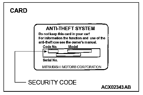 3. When the radio and CD player is replaced: Use the security code on the cards attached to the upper surface of the replacement radio and CD player.