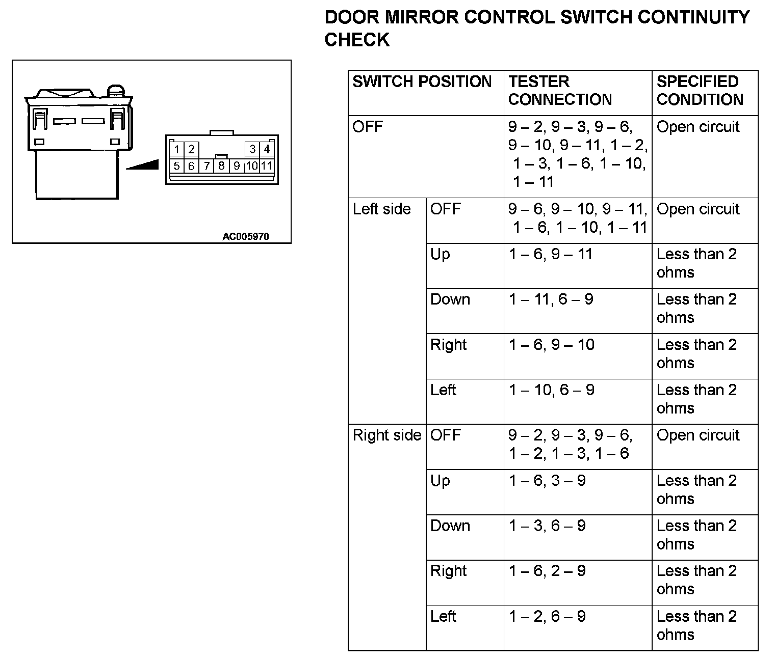 DOOR MIRROR CONTROL SWITCH CONTINUITY CHECK