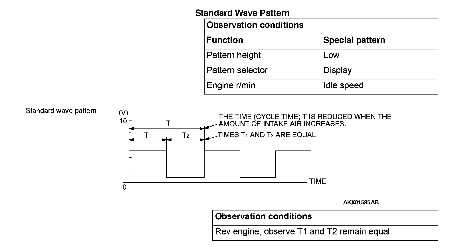 - Unstable wave pattern with non-uniform frequency. An ignition leak will distort the wave pattern temporarily, even if the volume air flow sensor is normal.