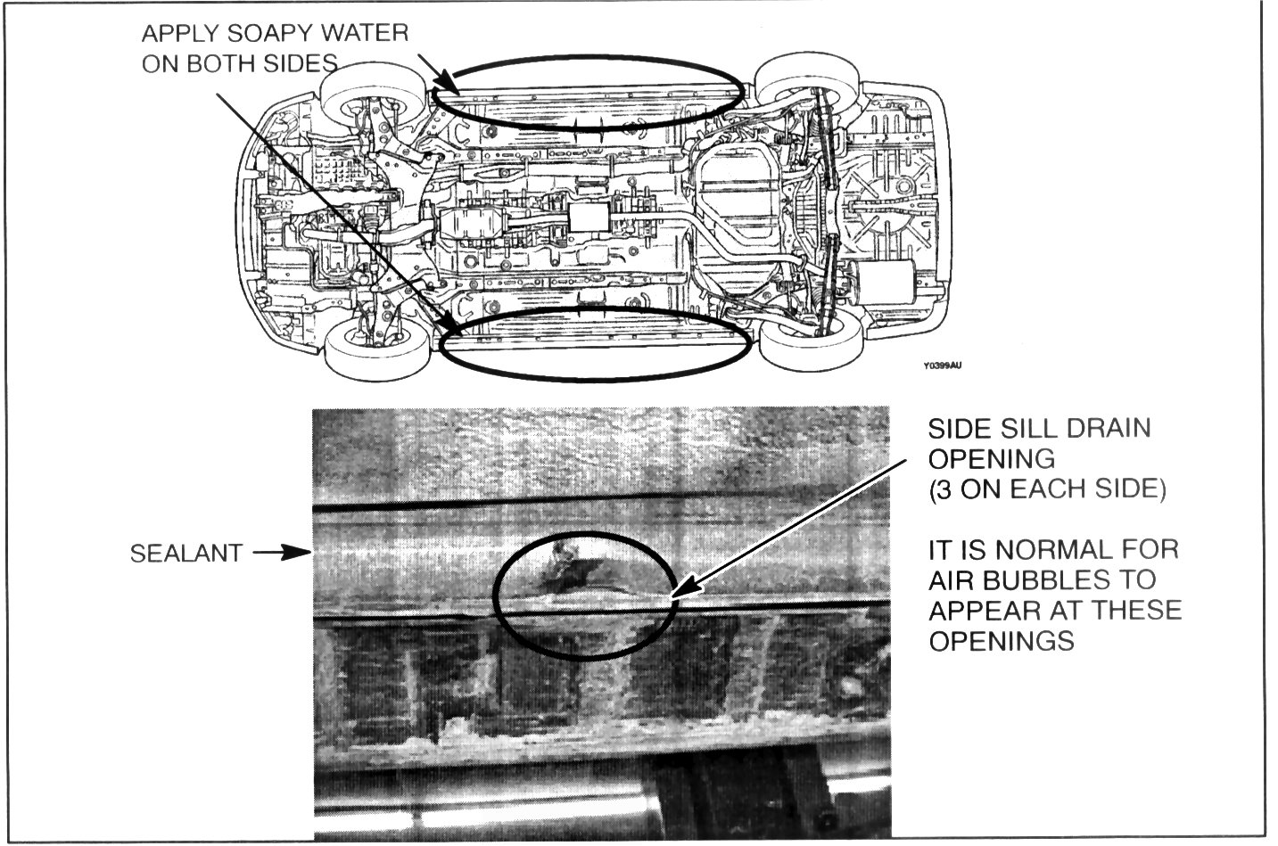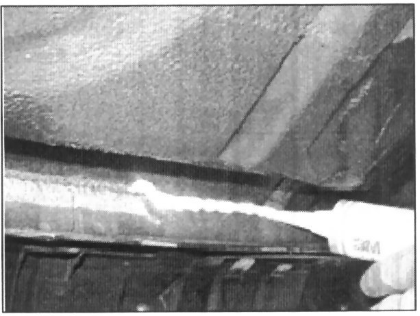 d. If air bubbles appear in any area of the side sill except the drain openings, turn the blower off and apply 3M 08370 sealant to all sealant gaps where air bubbles appear.